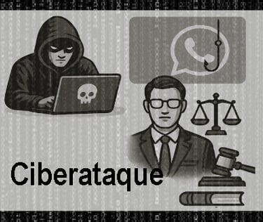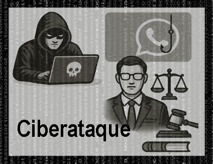 A figura 1, a seguir, ilustra um hacker em um notebook e pelo aplicativo (e.g, WhatasApp) hackeando um profissional em um ambiente jurídico, e uma anzol representando como se fosse uma isca para obter (pescar) informações privilegiadas: