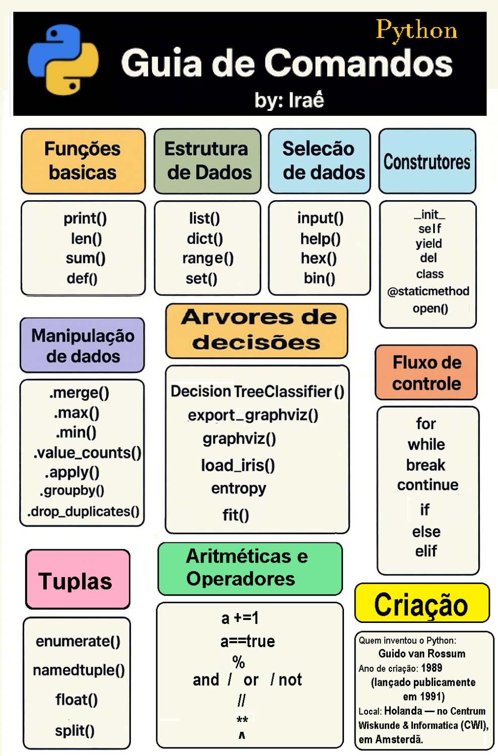 Hoje compartilho uma visão geral dos principais comandos e conceitos que tornam o Python uma das linguagens mais acessíveis e versáteis da atualidade.